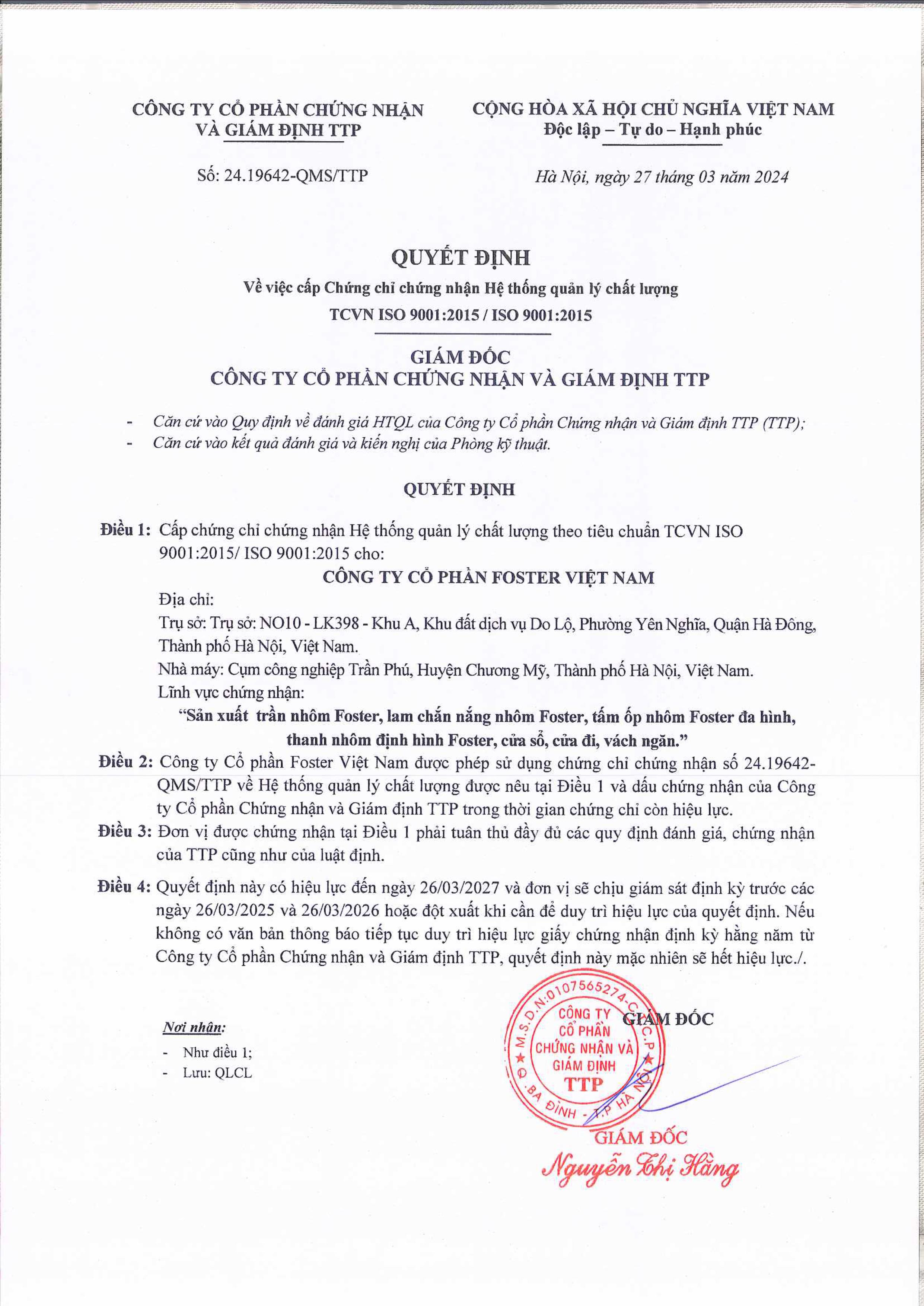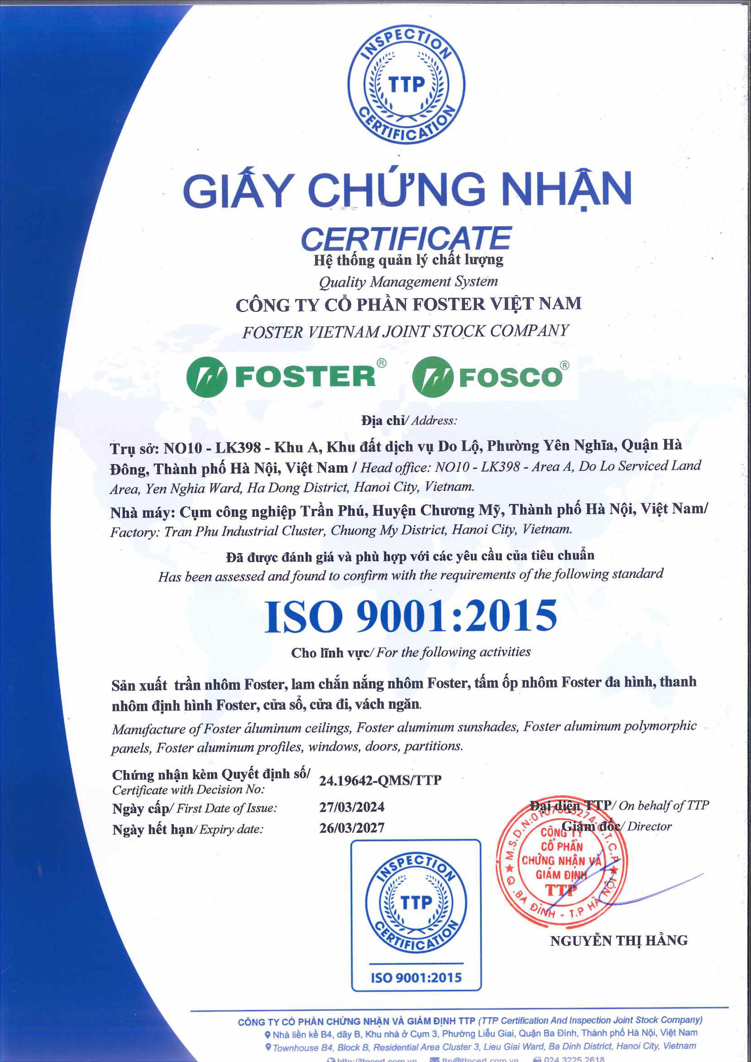 Website: www.foster.vn * www.trannhom.com